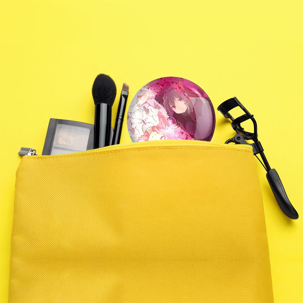 آینه های جیبی همورا و مدوکا انیمه مادوکا مجیکا Madoka Magica خندالو دایره ای به قطر 7.5 سانتی متر می باشد که نه خیلی بزرگ و غیر قابل استفاده در کیف آرایشی ست و نه خیلی کوچک که تصویر خاصی در آن مشاهده نشود. سایزی استاندارد و کارآمد دارد و مناسب قرار گیری در کیف لوازم آرایش و کیف های کوچک دستی نیز هست. بدنه ی آینه جیبی همورا و مدوکا انیمه مادوکا مجیکا Madoka Magica در قسمتی که آینه را در بر گرفته فلزی بوده و ظاهر براق و بسیار زیبایی دارد. چاپ طرح در پشت آینه بوسیله چاپگرهای دیجیتال شش رنگ با شفافیت و کیفیتی مثال زدنی انجام گرفته و با روکش لمینت حرارتی پوشیده شده که در مقابل آسیب و خط و خش مقاوم بوده و کیفیت بالایی دارد. آینه های جیبی همورا و مدوکا انیمه مادوکا مجیکا Madoka Magica خندالو با تنوع طرحی بسیار بالا، سلیقه هر نوع مخاطبی را تامین میکند.