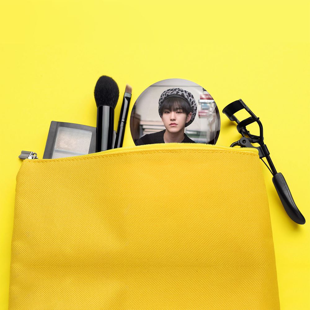 آینه های جیبی هوشی گروه سونتین Seventeen خندالو دایره ای به قطر 7.5 سانتی متر می باشد که نه خیلی بزرگ و غیر قابل استفاده در کیف آرایشی ست و نه خیلی کوچک که تصویر خاصی در آن مشاهده نشود. سایزی استاندارد و کارآمد دارد و مناسب قرار گیری در کیف لوازم آرایش و کیف های کوچک دستی نیز هست.