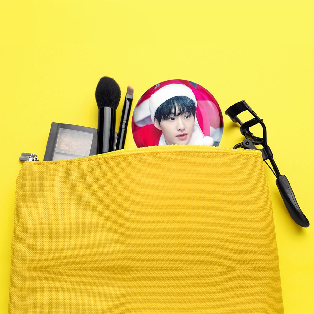 آینه های جیبی هوشی گروه سونتین Seventeen خندالو دایره ای به قطر 7.5 سانتی متر می باشد که نه خیلی بزرگ و غیر قابل استفاده در کیف آرایشی ست و نه خیلی کوچک که تصویر خاصی در آن مشاهده نشود. سایزی استاندارد و کارآمد دارد و مناسب قرار گیری در کیف لوازم آرایش و کیف های کوچک دستی نیز هست.