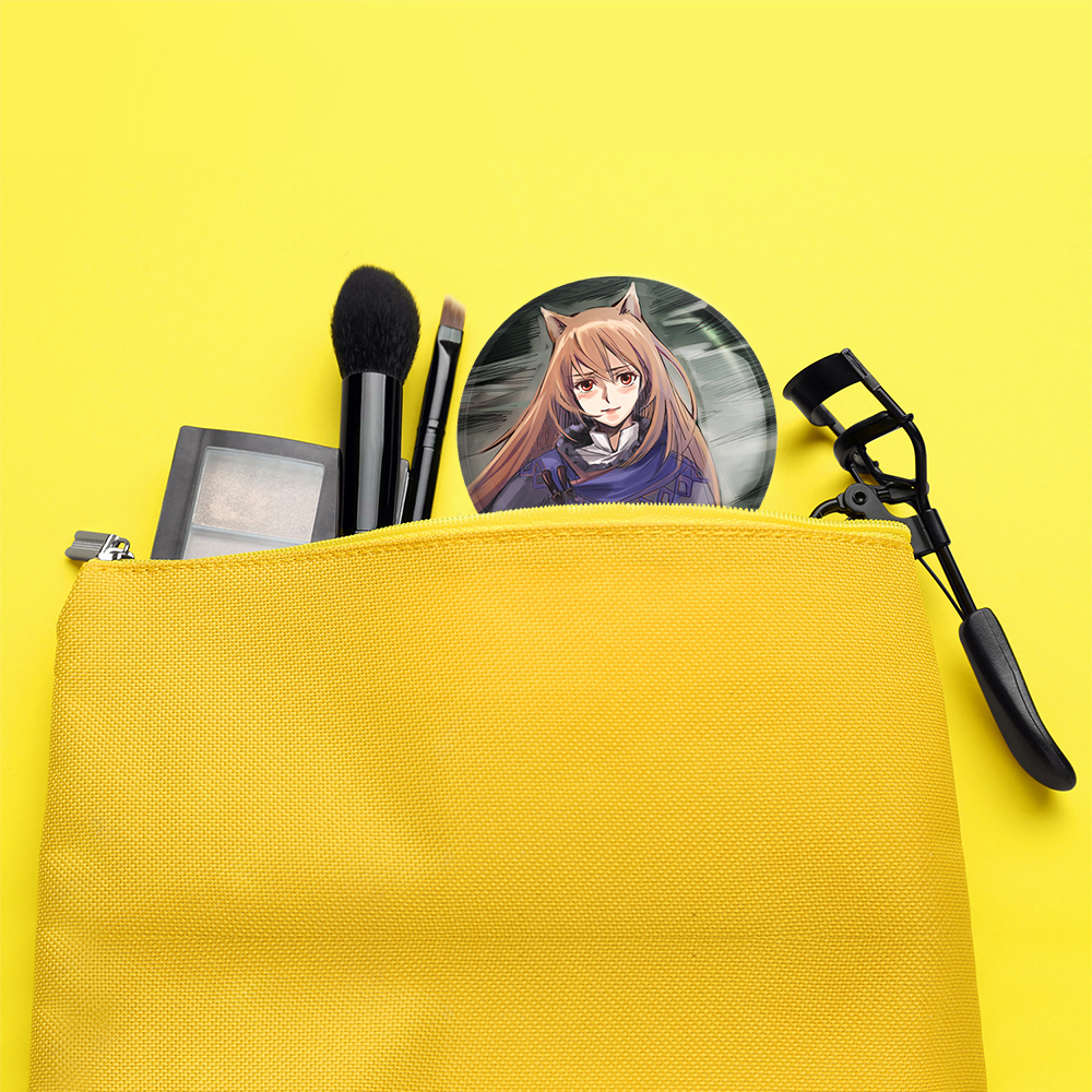 آینه های جیبی هولو انیمه ادویه و گرگ خندالو دایره ای به قطر 7.5 سانتی متر می باشد که نه خیلی بزرگ و غیر قابل استفاده در کیف آرایشی ست و نه خیلی کوچک که تصویر خاصی در آن مشاهده نشود. سایزی استاندارد و کارآمد دارد و مناسب قرار گیری در کیف لوازم آرایش و کیف های کوچک دستی نیز هست.
