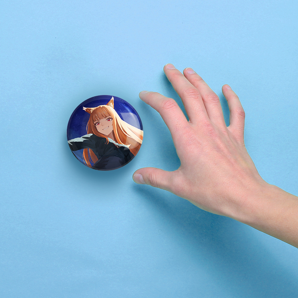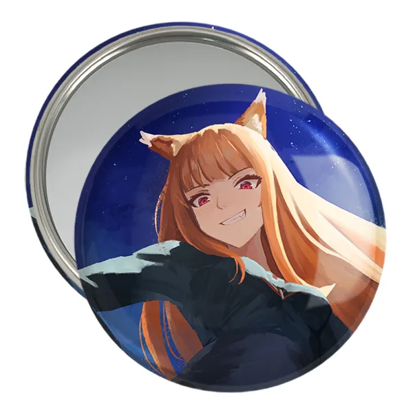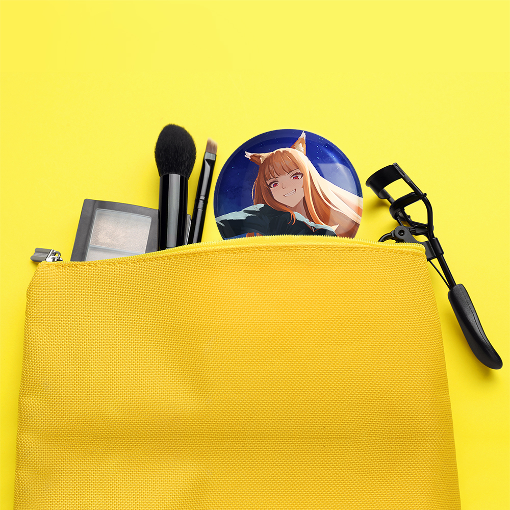 آینه های جیبی هولو انیمه ادویه و گرگ خندالو دایره ای به قطر 7.5 سانتی متر می باشد که نه خیلی بزرگ و غیر قابل استفاده در کیف آرایشی ست و نه خیلی کوچک که تصویر خاصی در آن مشاهده نشود. سایزی استاندارد و کارآمد دارد و مناسب قرار گیری در کیف لوازم آرایش و کیف های کوچک دستی نیز هست.