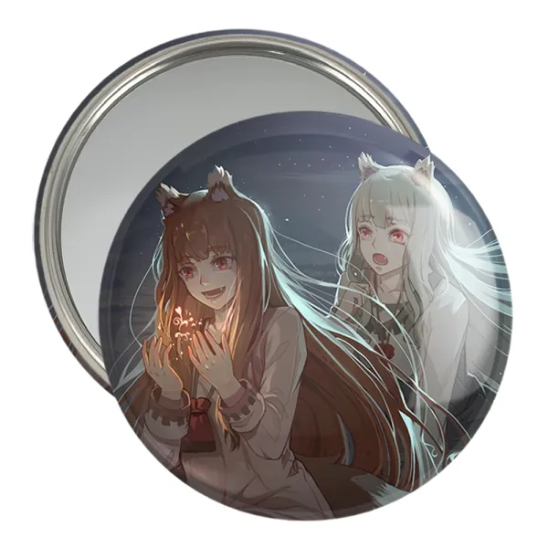 آینه های جیبی هولو انیمه ادویه و گرگ خندالو دایره ای به قطر 7.5 سانتی متر می باشد که نه خیلی بزرگ و غیر قابل استفاده در کیف آرایشی ست و نه خیلی کوچک که تصویر خاصی در آن مشاهده نشود. سایزی استاندارد و کارآمد دارد و مناسب قرار گیری در کیف لوازم آرایش و کیف های کوچک دستی نیز هست.