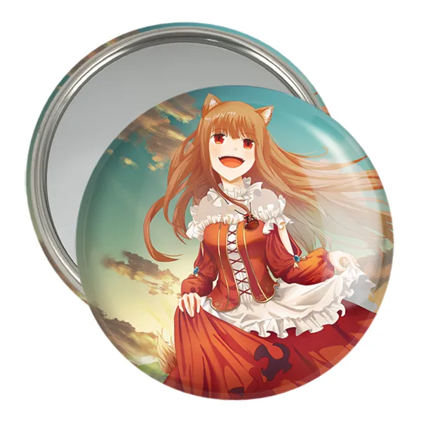 آینه های جیبی هولو انیمه ادویه و گرگ خندالو دایره ای به قطر 7.5 سانتی متر می باشد که نه خیلی بزرگ و غیر قابل استفاده در کیف آرایشی ست و نه خیلی کوچک که تصویر خاصی در آن مشاهده نشود. سایزی استاندارد و کارآمد دارد و مناسب قرار گیری در کیف لوازم آرایش و کیف های کوچک دستی نیز هست.