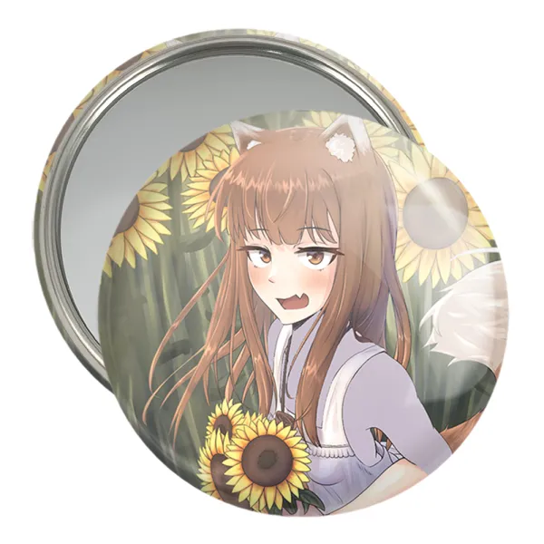 آینه های جیبی هولو انیمه ادویه و گرگ خندالو دایره ای به قطر 7.5 سانتی متر می باشد که نه خیلی بزرگ و غیر قابل استفاده در کیف آرایشی ست و نه خیلی کوچک که تصویر خاصی در آن مشاهده نشود. سایزی استاندارد و کارآمد دارد و مناسب قرار گیری در کیف لوازم آرایش و کیف های کوچک دستی نیز هست.