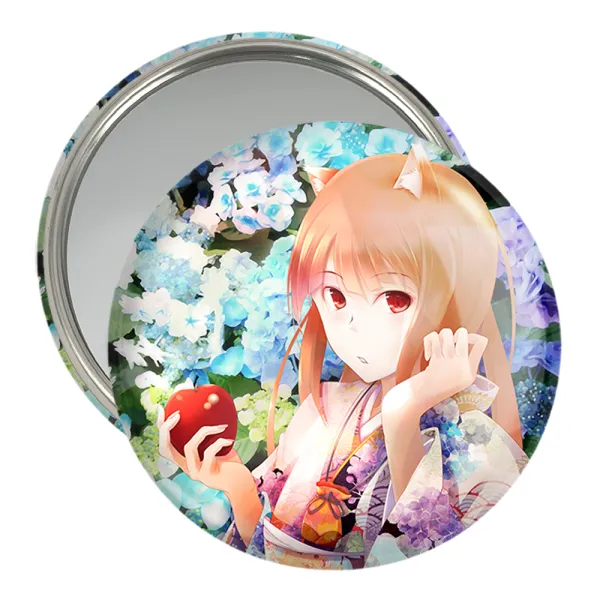 آینه های جیبی هولو انیمه ادویه و گرگ خندالو دایره ای به قطر 7.5 سانتی متر می باشد که نه خیلی بزرگ و غیر قابل استفاده در کیف آرایشی ست و نه خیلی کوچک که تصویر خاصی در آن مشاهده نشود. سایزی استاندارد و کارآمد دارد و مناسب قرار گیری در کیف لوازم آرایش و کیف های کوچک دستی نیز هست.