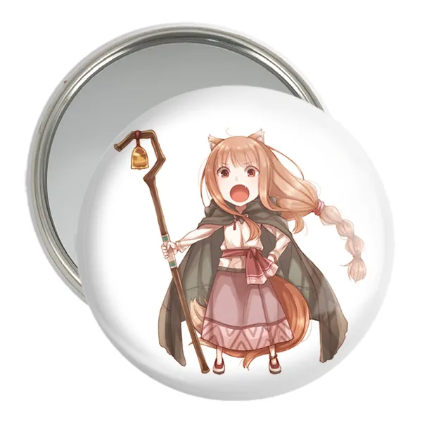 آینه های جیبی هولو انیمه ادویه و گرگ خندالو دایره ای به قطر 7.5 سانتی متر می باشد که نه خیلی بزرگ و غیر قابل استفاده در کیف آرایشی ست و نه خیلی کوچک که تصویر خاصی در آن مشاهده نشود. سایزی استاندارد و کارآمد دارد و مناسب قرار گیری در کیف لوازم آرایش و کیف های کوچک دستی نیز هست.