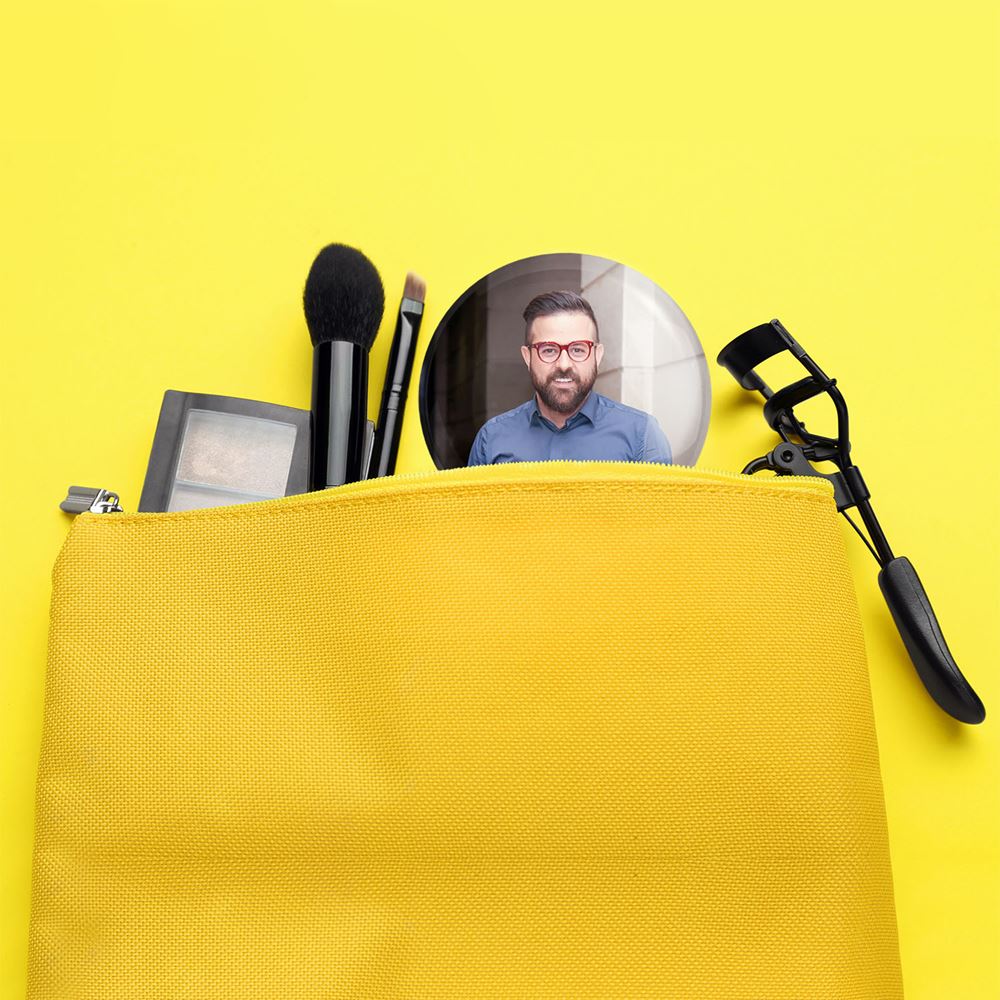 آینه های جیبی هومن سیدی خندالو دایره ای به قطر 7.5 سانتی متر می باشد که نه خیلی بزرگ و غیر قابل استفاده در کیف آرایشی ست و نه خیلی کوچک که تصویر خاصی در آن مشاهده نشود. سایزی استاندارد و کارآمد دارد و مناسب قرار گیری در کیف لوازم آرایش و کیف های کوچک دستی نیز هست.