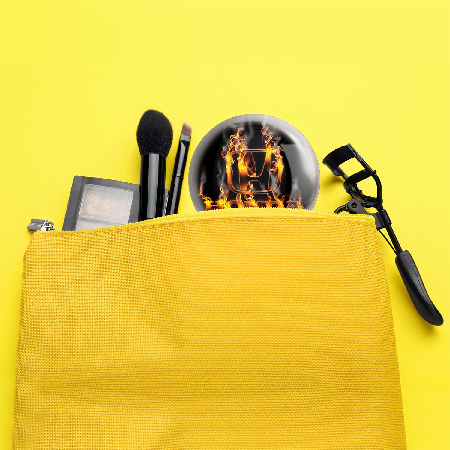 آینه های جیبی هوندا Honda خندالو دایره ای به قطر 7.5 سانتی متر می باشد که نه خیلی بزرگ و غیر قابل استفاده در کیف آرایشی ست و نه خیلی کوچک که تصویر خاصی در آن مشاهده نشود. سایزی استاندارد و کارآمد دارد و مناسب قرار گیری در کیف لوازم آرایش و کیف های کوچک دستی نیز هست.