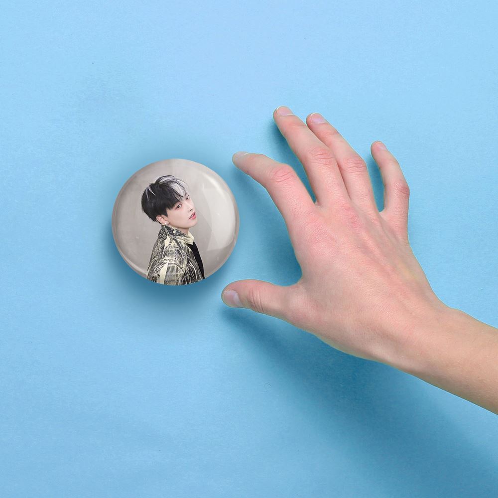 آینه های جیبی هونگ جونگ گروه ایتیز ATEEZ خندالو دایره ای به قطر 7.5 سانتی متر می باشد که نه خیلی بزرگ و غیر قابل استفاده در کیف آرایشی ست و نه خیلی کوچک که تصویر خاصی در آن مشاهده نشود. سایزی استاندارد و کارآمد دارد و مناسب قرار گیری در کیف لوازم آرایش و کیف های کوچک دستی نیز هست.