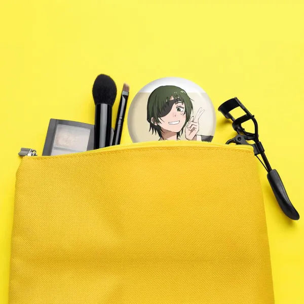 آینه های جیبی هیمنو انیمه مرد اره ای Chainsaw Man خندالو دایره ای به قطر 7.5 سانتی متر می باشد که نه خیلی بزرگ و غیر قابل استفاده در کیف آرایشی ست و نه خیلی کوچک که تصویر خاصی در آن مشاهده نشود. سایزی استاندارد و کارآمد دارد و مناسب قرار گیری در کیف لوازم آرایش و کیف های کوچک دستی نیز هست. بدنه ی آینه جیبی هیمنو انیمه مرد اره ای Chainsaw Man در قسمتی که آینه را در بر گرفته فلزی بوده و ظاهر براق و بسیار زیبایی دارد. چاپ طرح در پشت آینه بوسیله چاپگرهای دیجیتال شش رنگ با شفافیت و کیفیتی مثال زدنی انجام گرفته و با روکش لمینت حرارتی پوشیده شده که در مقابل آسیب و خط و خش مقاوم بوده و کیفیت بالایی دارد. آینه های جیبی هیمنو انیمه مرد اره ای Chainsaw Man خندالو با تنوع طرحی بسیار بالا، سلیقه هر نوع مخاطبی را تامین میکند.