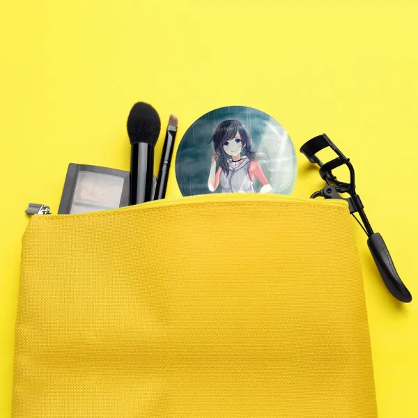 آینه های جیبی هینا انیمه تغییر آب و هوا با تو خندالو دایره ای به قطر 7.5 سانتی متر می باشد که نه خیلی بزرگ و غیر قابل استفاده در کیف آرایشی ست و نه خیلی کوچک که تصویر خاصی در آن مشاهده نشود. سایزی استاندارد و کارآمد دارد و مناسب قرار گیری در کیف لوازم آرایش و کیف های کوچک دستی نیز هست.
