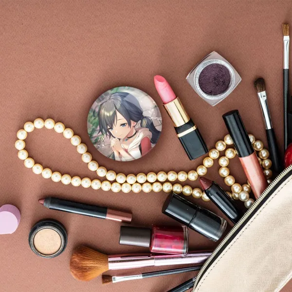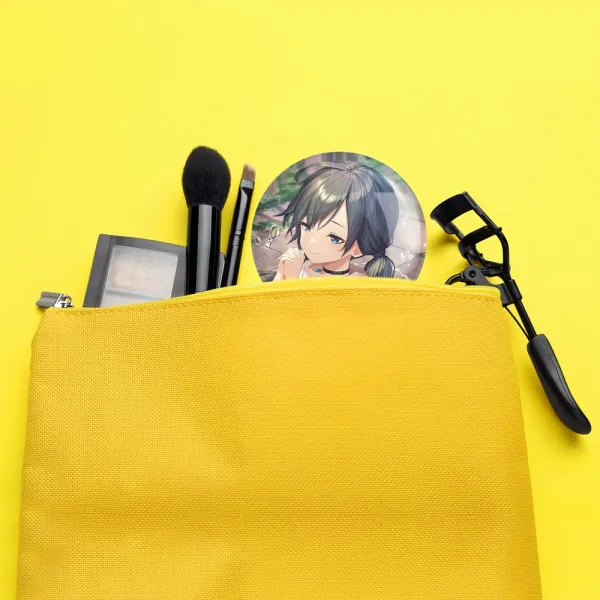 آینه های جیبی هینا انیمه تغییر آب و هوا با تو خندالو دایره ای به قطر 7.5 سانتی متر می باشد که نه خیلی بزرگ و غیر قابل استفاده در کیف آرایشی ست و نه خیلی کوچک که تصویر خاصی در آن مشاهده نشود. سایزی استاندارد و کارآمد دارد و مناسب قرار گیری در کیف لوازم آرایش و کیف های کوچک دستی نیز هست.