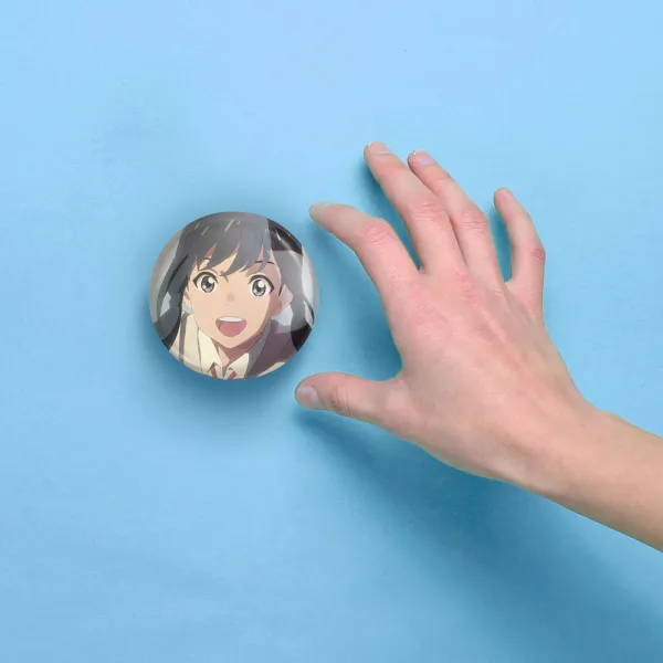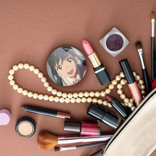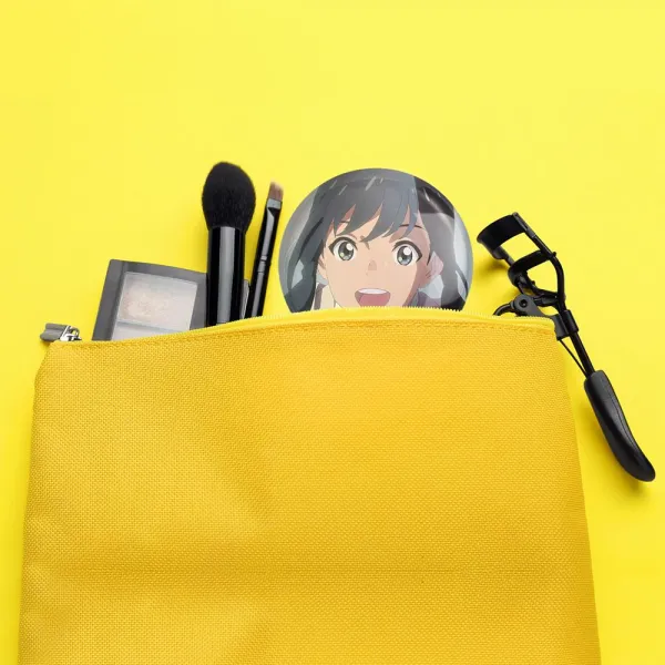 آینه های جیبی هینا انیمه تغییر آب و هوا با تو خندالو دایره ای به قطر 7.5 سانتی متر می باشد که نه خیلی بزرگ و غیر قابل استفاده در کیف آرایشی ست و نه خیلی کوچک که تصویر خاصی در آن مشاهده نشود. سایزی استاندارد و کارآمد دارد و مناسب قرار گیری در کیف لوازم آرایش و کیف های کوچک دستی نیز هست.
