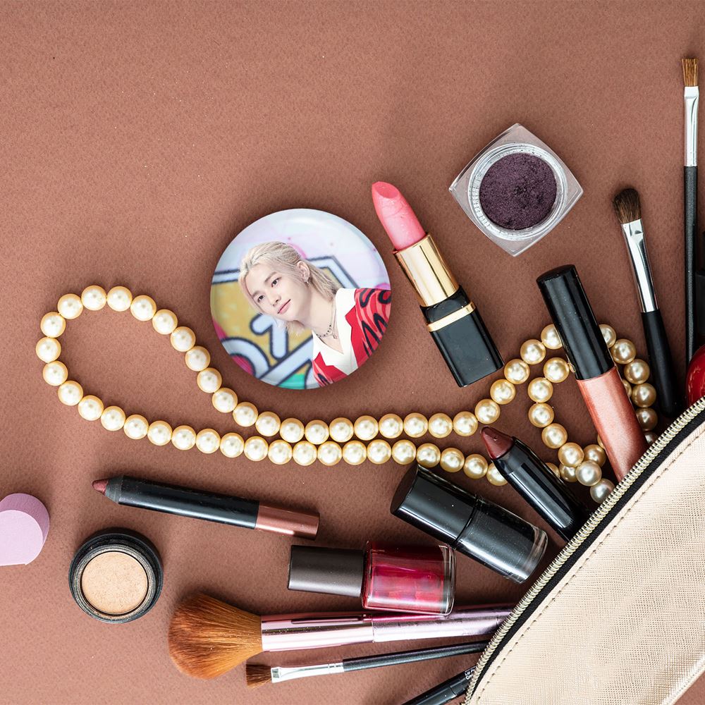 آینه های جیبی هیونجین گروه استری کیدز Stray Kids خندالو دایره ای به قطر 7.5 سانتی متر می باشد که نه خیلی بزرگ و غیر قابل استفاده در کیف آرایشی ست و نه خیلی کوچک که تصویر خاصی در آن مشاهده نشود. سایزی استاندارد و کارآمد دارد و مناسب قرار گیری در کیف لوازم آرایش و کیف های کوچک دستی نیز هست.