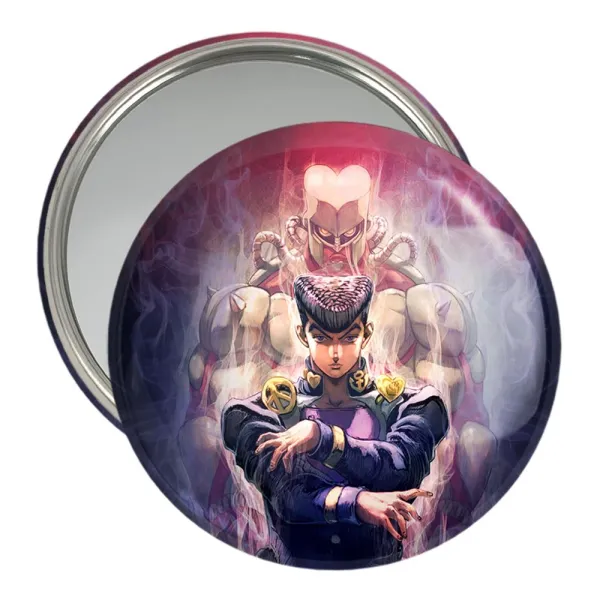 آینه های جیبی هیگاشکاتا جوسکه انیمه جوجو Jojo خندالو دایره ای به قطر 7.5 سانتی متر می باشد که نه خیلی بزرگ و غیر قابل استفاده در کیف آرایشی ست و نه خیلی کوچک که تصویر خاصی در آن مشاهده نشود. سایزی استاندارد و کارآمد دارد و مناسب قرار گیری در کیف لوازم آرایش و کیف های کوچک دستی نیز هست. بدنه ی آینه جیبی هیگاشکاتا جوسکه انیمه جوجو Jojo در قسمتی که آینه را در بر گرفته فلزی بوده و ظاهر براق و بسیار زیبایی دارد. چاپ طرح در پشت آینه بوسیله چاپگرهای دیجیتال شش رنگ با شفافیت و کیفیتی مثال زدنی انجام گرفته و با روکش لمینت حرارتی پوشیده شده که در مقابل آسیب و خط و خش مقاوم بوده و کیفیت بالایی دارد. آینه های جیبی هیگاشکاتا جوسکه انیمه جوجو Jojo خندالو با تنوع طرحی بسیار بالا، سلیقه هر نوع مخاطبی را تامین میکند.