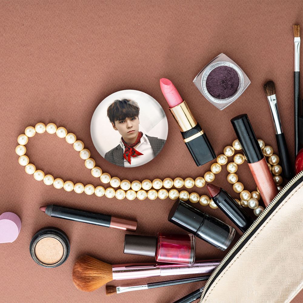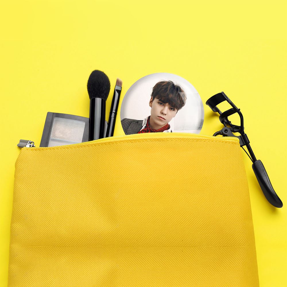 آینه های جیبی ورنون گروه سونتین Seventeen خندالو دایره ای به قطر 7.5 سانتی متر می باشد که نه خیلی بزرگ و غیر قابل استفاده در کیف آرایشی ست و نه خیلی کوچک که تصویر خاصی در آن مشاهده نشود. سایزی استاندارد و کارآمد دارد و مناسب قرار گیری در کیف لوازم آرایش و کیف های کوچک دستی نیز هست.
