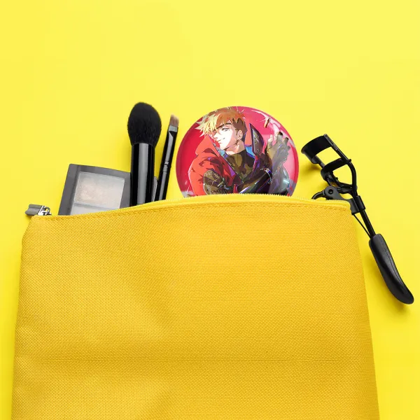 آینه های جیبی وش انیمه تریگان (Trigun) خندالو دایره ای به قطر 7.5 سانتی متر می باشد که نه خیلی بزرگ و غیر قابل استفاده در کیف آرایشی ست و نه خیلی کوچک که تصویر خاصی در آن مشاهده نشود. سایزی استاندارد و کارآمد دارد و مناسب قرار گیری در کیف لوازم آرایش و کیف های کوچک دستی نیز هست.