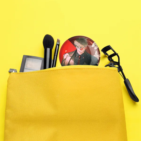 آینه های جیبی وش انیمه تریگان (Trigun) خندالو دایره ای به قطر 7.5 سانتی متر می باشد که نه خیلی بزرگ و غیر قابل استفاده در کیف آرایشی ست و نه خیلی کوچک که تصویر خاصی در آن مشاهده نشود. سایزی استاندارد و کارآمد دارد و مناسب قرار گیری در کیف لوازم آرایش و کیف های کوچک دستی نیز هست.