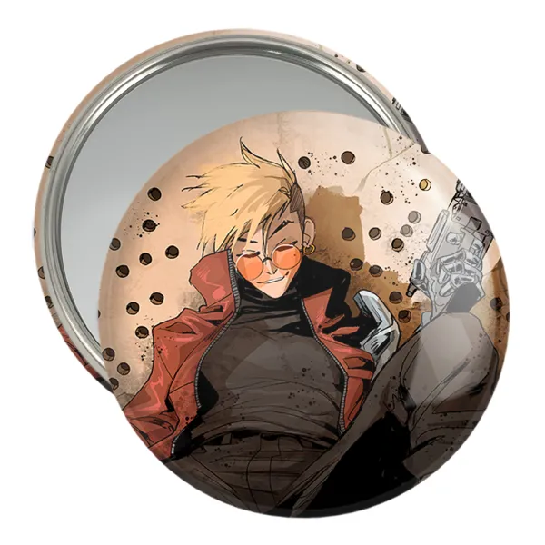 آینه های جیبی وش انیمه تریگان (Trigun) خندالو دایره ای به قطر 7.5 سانتی متر می باشد که نه خیلی بزرگ و غیر قابل استفاده در کیف آرایشی ست و نه خیلی کوچک که تصویر خاصی در آن مشاهده نشود. سایزی استاندارد و کارآمد دارد و مناسب قرار گیری در کیف لوازم آرایش و کیف های کوچک دستی نیز هست.