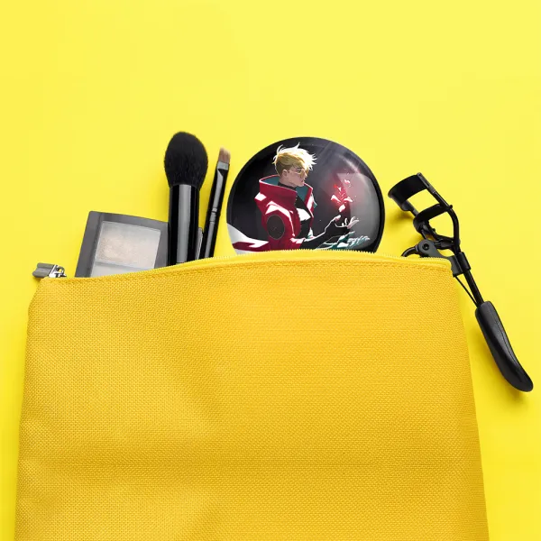 آینه های جیبی وش انیمه تریگان (Trigun) خندالو دایره ای به قطر 7.5 سانتی متر می باشد که نه خیلی بزرگ و غیر قابل استفاده در کیف آرایشی ست و نه خیلی کوچک که تصویر خاصی در آن مشاهده نشود. سایزی استاندارد و کارآمد دارد و مناسب قرار گیری در کیف لوازم آرایش و کیف های کوچک دستی نیز هست.