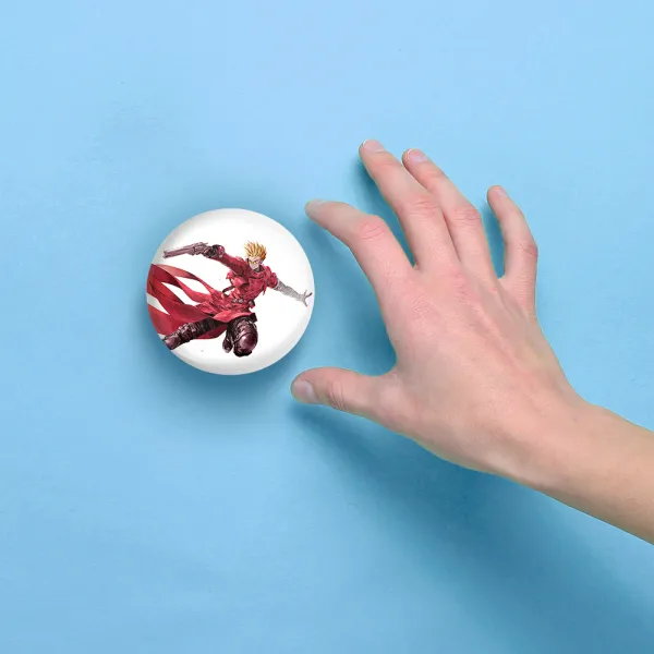 آینه های جیبی وش و کورونکو انیمه تریگان خندالو دایره ای به قطر 7.5 سانتی متر می باشد که نه خیلی بزرگ و غیر قابل استفاده در کیف آرایشی ست و نه خیلی کوچک که تصویر خاصی در آن مشاهده نشود. سایزی استاندارد و کارآمد دارد و مناسب قرار گیری در کیف لوازم آرایش و کیف های کوچک دستی نیز هست. بدنه ی آینه جیبی وش و کورونکو انیمه تریگان در قسمتی که آینه را در بر گرفته فلزی بوده و ظاهر براق و بسیار زیبایی دارد. چاپ طرح در پشت آینه بوسیله چاپگرهای دیجیتال شش رنگ با شفافیت و کیفیتی مثال زدنی انجام گرفته و با روکش لمینت حرارتی پوشیده شده که در مقابل آسیب و خط و خش مقاوم بوده و کیفیت بالایی دارد. آینه های جیبی وش و کورونکو انیمه تریگان خندالو با تنوع طرحی بسیار بالا، سلیقه هر نوع مخاطبی را تامین میکند.