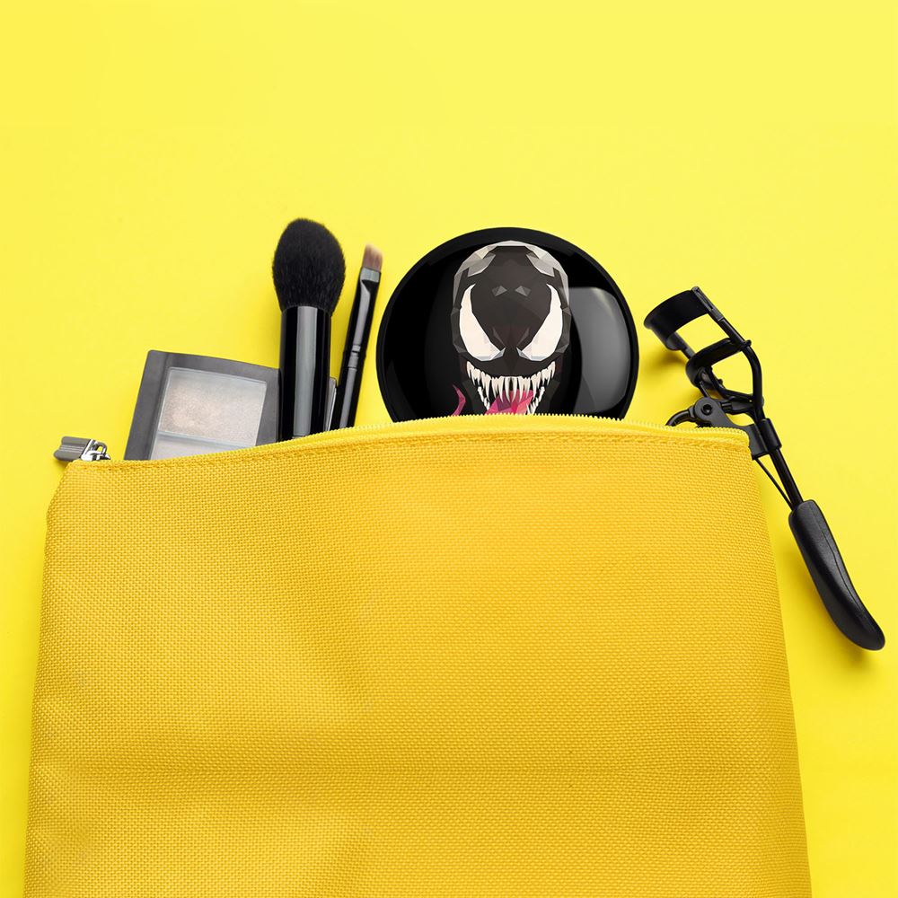 آینه های جیبی ونوم Venom خندالو دایره ای به قطر 7.5 سانتی متر می باشد که نه خیلی بزرگ و غیر قابل استفاده در کیف آرایشی ست و نه خیلی کوچک که تصویر خاصی در آن مشاهده نشود. سایزی استاندارد و کارآمد دارد و مناسب قرار گیری در کیف لوازم آرایش و کیف های کوچک دستی نیز هست.