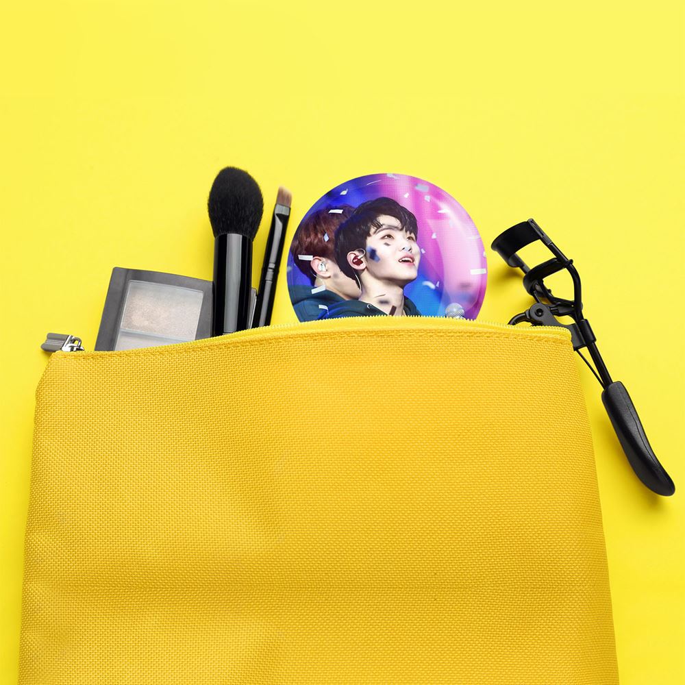 آینه های جیبی ووزی گروه سونتین Seventeen خندالو دایره ای به قطر 7.5 سانتی متر می باشد که نه خیلی بزرگ و غیر قابل استفاده در کیف آرایشی ست و نه خیلی کوچک که تصویر خاصی در آن مشاهده نشود. سایزی استاندارد و کارآمد دارد و مناسب قرار گیری در کیف لوازم آرایش و کیف های کوچک دستی نیز هست.