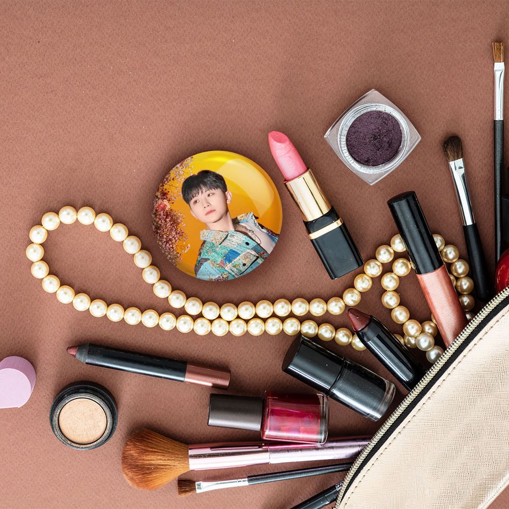 آینه های جیبی ووزی گروه سونتین Seventeen خندالو دایره ای به قطر 7.5 سانتی متر می باشد که نه خیلی بزرگ و غیر قابل استفاده در کیف آرایشی ست و نه خیلی کوچک که تصویر خاصی در آن مشاهده نشود. سایزی استاندارد و کارآمد دارد و مناسب قرار گیری در کیف لوازم آرایش و کیف های کوچک دستی نیز هست.