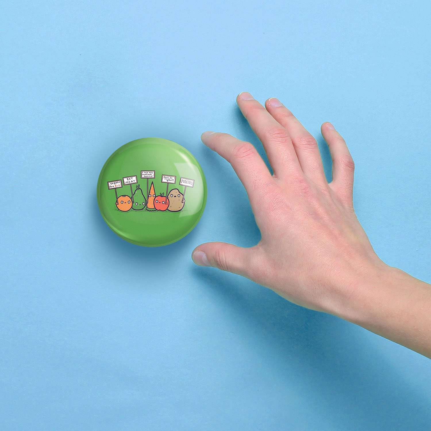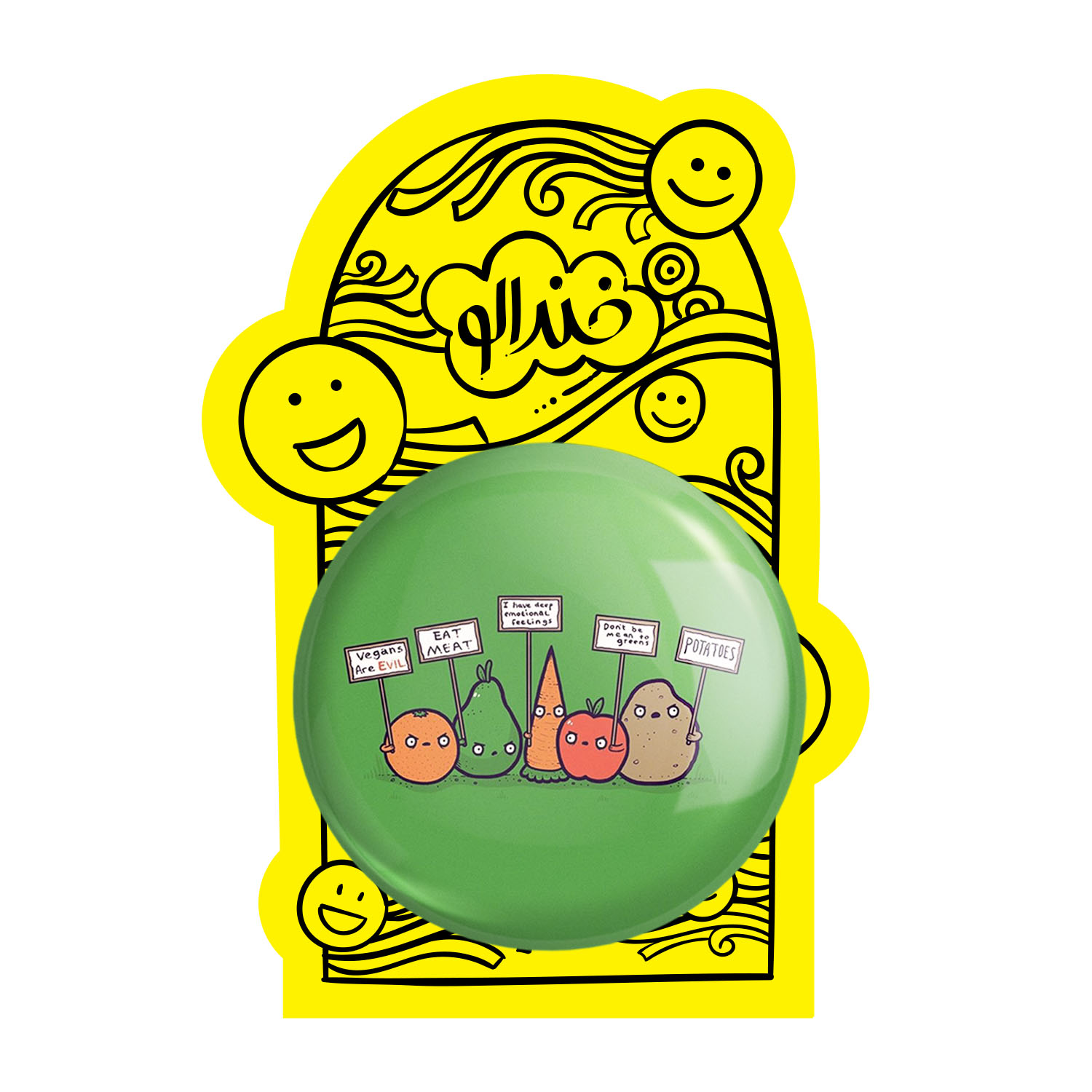 آینه های جیبی وگن Vegan خندالو دایره ای به قطر 7.5 سانتی متر می باشد که نه خیلی بزرگ و غیر قابل استفاده در کیف آرایشی ست و نه خیلی کوچک که تصویر خاصی در آن مشاهده نشود. سایزی استاندارد و کارآمد دارد و مناسب قرار گیری در کیف لوازم آرایش و کیف های کوچک دستی نیز هست.