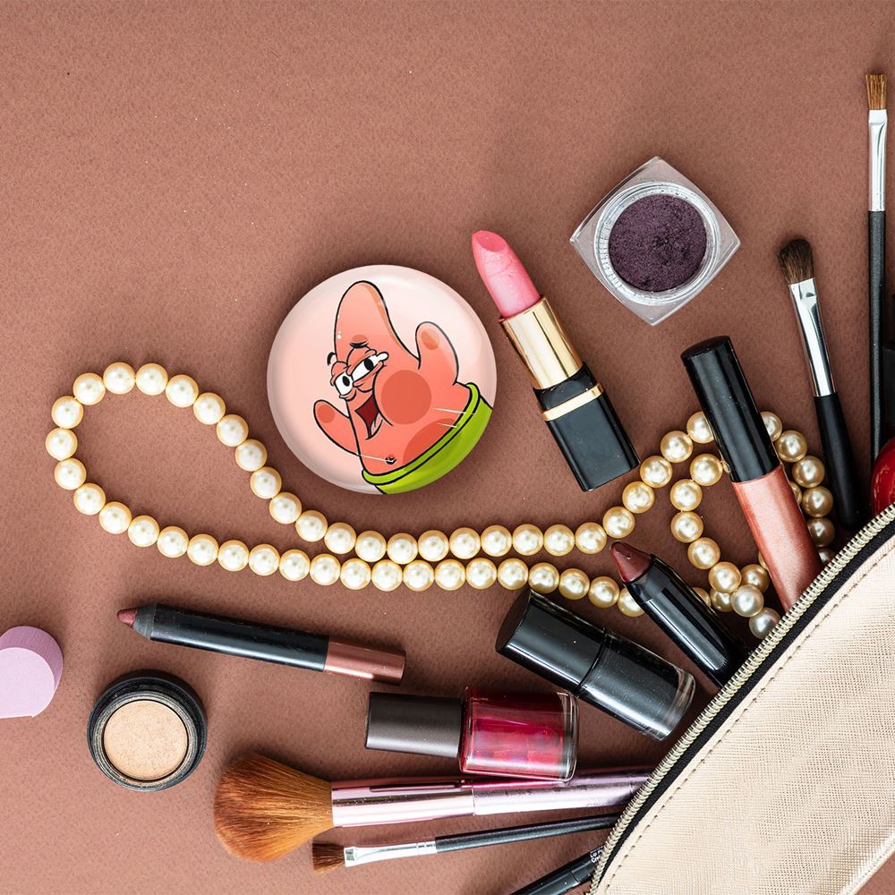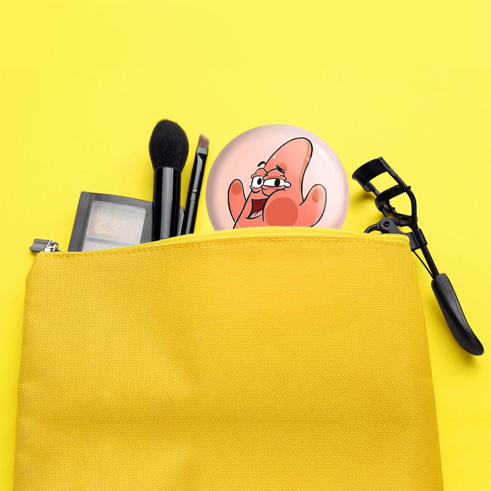 آینه های جیبی پاتریک باب اسفنجی خندالو دایره ای به قطر 7.5 سانتی متر می باشد که نه خیلی بزرگ و غیر قابل استفاده در کیف آرایشی ست و نه خیلی کوچک که تصویر خاصی در آن مشاهده نشود. سایزی استاندارد و کارآمد دارد و مناسب قرار گیری در کیف لوازم آرایش و کیف های کوچک دستی نیز هست.