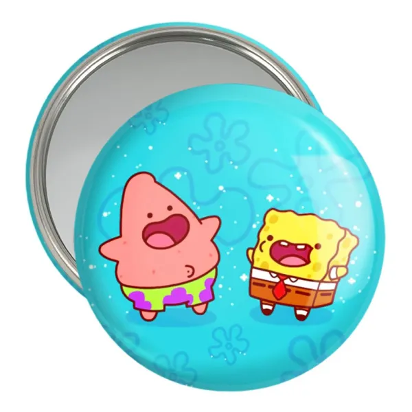 آینه های جیبی پاتریک و باب اسفنجی خندالو دایره ای به قطر 7.5 سانتی متر می باشد که نه خیلی بزرگ و غیر قابل استفاده در کیف آرایشی ست و نه خیلی کوچک که تصویر خاصی در آن مشاهده نشود. سایزی استاندارد و کارآمد دارد و مناسب قرار گیری در کیف لوازم آرایش و کیف های کوچک دستی نیز هست. بدنه ی آینه جیبی پاتریک و باب اسفنجی در قسمتی که آینه را در بر گرفته فلزی بوده و ظاهر براق و بسیار زیبایی دارد. چاپ طرح در پشت آینه بوسیله چاپگرهای دیجیتال شش رنگ با شفافیت و کیفیتی مثال زدنی انجام گرفته و با روکش لمینت حرارتی پوشیده شده که در مقابل آسیب و خط و خش مقاوم بوده و کیفیت بالایی دارد. آینه های جیبی پاتریک و باب اسفنجی خندالو با تنوع طرحی بسیار بالا، سلیقه هر نوع مخاطبی را تامین میکند.