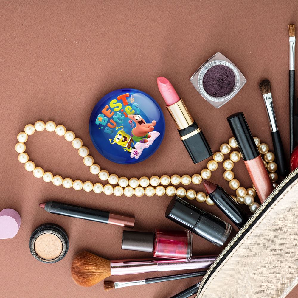 آینه های جیبی پاتریک و باب اسفنجی خندالو دایره ای به قطر 7.5 سانتی متر می باشد که نه خیلی بزرگ و غیر قابل استفاده در کیف آرایشی ست و نه خیلی کوچک که تصویر خاصی در آن مشاهده نشود. سایزی استاندارد و کارآمد دارد و مناسب قرار گیری در کیف لوازم آرایش و کیف های کوچک دستی نیز هست. بدنه ی آینه جیبی پاتریک و باب اسفنجی در قسمتی که آینه را در بر گرفته فلزی بوده و ظاهر براق و بسیار زیبایی دارد. چاپ طرح در پشت آینه بوسیله چاپگرهای دیجیتال شش رنگ با شفافیت و کیفیتی مثال زدنی انجام گرفته و با روکش لمینت حرارتی پوشیده شده که در مقابل آسیب و خط و خش مقاوم بوده و کیفیت بالایی دارد. آینه های جیبی پاتریک و باب اسفنجی خندالو با تنوع طرحی بسیار بالا، سلیقه هر نوع مخاطبی را تامین میکند.