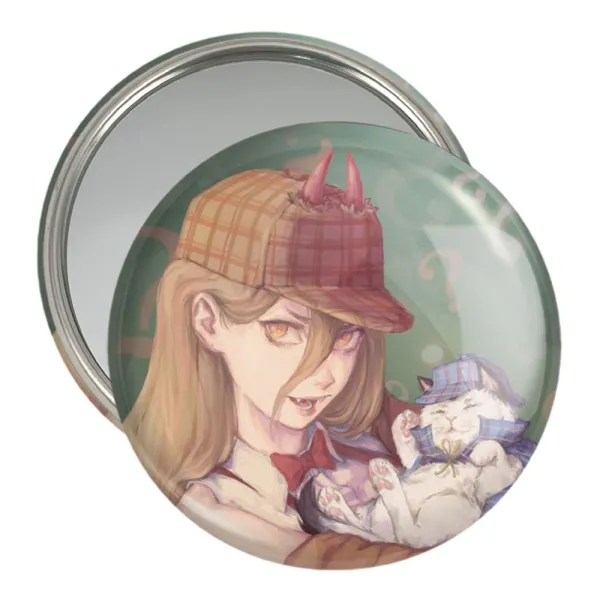 آینه های جیبی پاور انیمه مرد اره ای Chainsaw Man خندالو دایره ای به قطر 7.5 سانتی متر می باشد که نه خیلی بزرگ و غیر قابل استفاده در کیف آرایشی ست و نه خیلی کوچک که تصویر خاصی در آن مشاهده نشود. سایزی استاندارد و کارآمد دارد و مناسب قرار گیری در کیف لوازم آرایش و کیف های کوچک دستی نیز هست. بدنه ی آینه جیبی پاور انیمه مرد اره ای Chainsaw Man در قسمتی که آینه را در بر گرفته فلزی بوده و ظاهر براق و بسیار زیبایی دارد. چاپ طرح در پشت آینه بوسیله چاپگرهای دیجیتال شش رنگ با شفافیت و کیفیتی مثال زدنی انجام گرفته و با روکش لمینت حرارتی پوشیده شده که در مقابل آسیب و خط و خش مقاوم بوده و کیفیت بالایی دارد. آینه های جیبی پاور انیمه مرد اره ای Chainsaw Man خندالو با تنوع طرحی بسیار بالا، سلیقه هر نوع مخاطبی را تامین میکند.