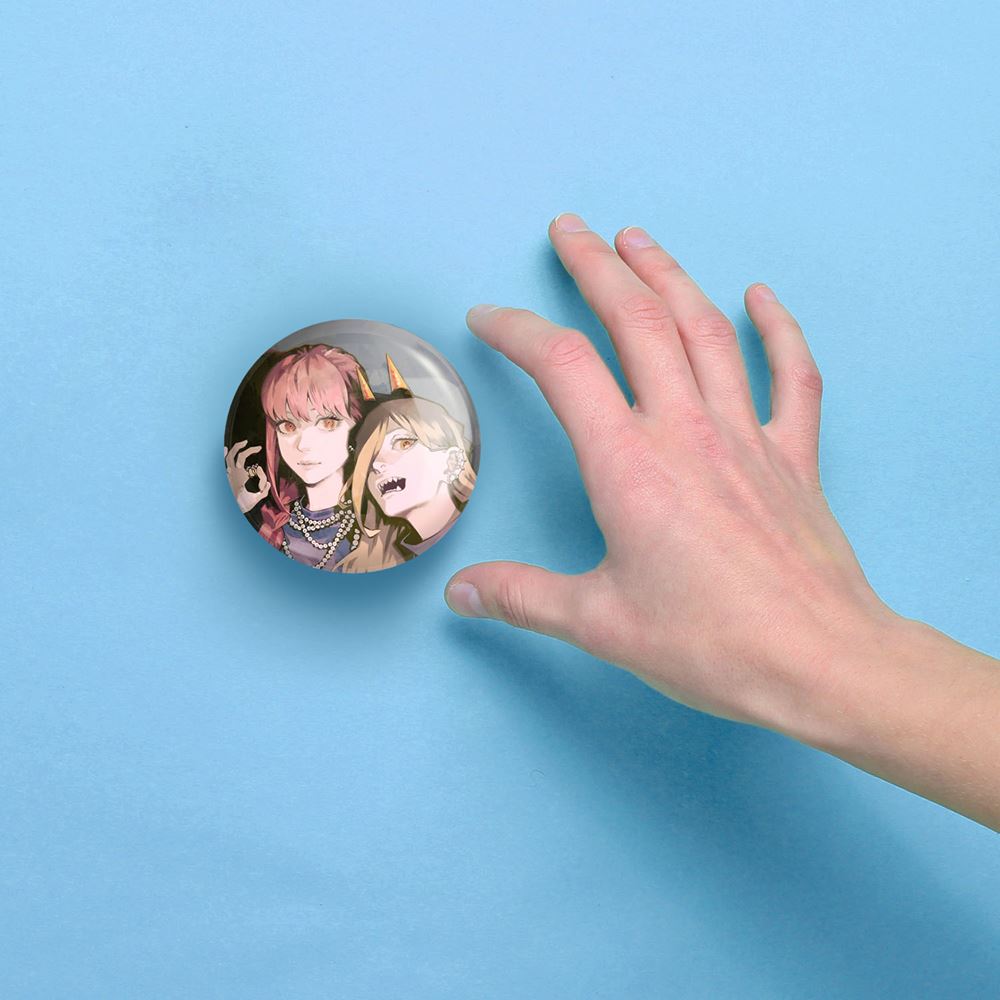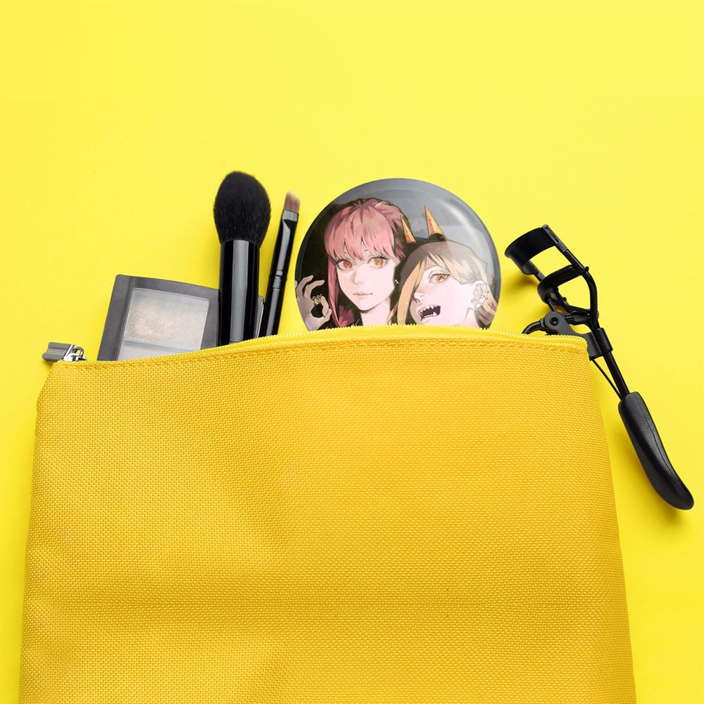 آینه های جیبی پاور و ماکیما انیمه مرد اره ای Chainsaw Man خندالو دایره ای به قطر 7.5 سانتی متر می باشد که نه خیلی بزرگ و غیر قابل استفاده در کیف آرایشی ست و نه خیلی کوچک که تصویر خاصی در آن مشاهده نشود. سایزی استاندارد و کارآمد دارد و مناسب قرار گیری در کیف لوازم آرایش و کیف های کوچک دستی نیز هست. بدنه ی آینه جیبی پاور و ماکیما انیمه مرد اره ای Chainsaw Man در قسمتی که آینه را در بر گرفته فلزی بوده و ظاهر براق و بسیار زیبایی دارد. چاپ طرح در پشت آینه بوسیله چاپگرهای دیجیتال شش رنگ با شفافیت و کیفیتی مثال زدنی انجام گرفته و با روکش لمینت حرارتی پوشیده شده که در مقابل آسیب و خط و خش مقاوم بوده و کیفیت بالایی دارد. آینه های جیبی پاور و ماکیما انیمه مرد اره ای Chainsaw Man خندالو با تنوع طرحی بسیار بالا، سلیقه هر نوع مخاطبی را تامین میکند.