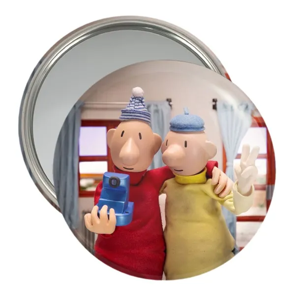 آینه های جیبی پت و مت خندالو دایره ای به قطر 7.5 سانتی متر می باشد که نه خیلی بزرگ و غیر قابل استفاده در کیف آرایشی ست و نه خیلی کوچک که تصویر خاصی در آن مشاهده نشود. سایزی استاندارد و کارآمد دارد و مناسب قرار گیری در کیف لوازم آرایش و کیف های کوچک دستی نیز هست.