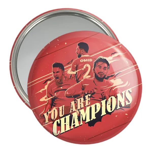 آینه های جیبی پرسپولیس خندالو دایره ای به قطر 7.5 سانتی متر می باشد که نه خیلی بزرگ و غیر قابل استفاده در کیف آرایشی ست و نه خیلی کوچک که تصویر خاصی در آن مشاهده نشود. سایزی استاندارد و کارآمد دارد و مناسب قرار گیری در کیف لوازم آرایش و کیف های کوچک دستی نیز هست.