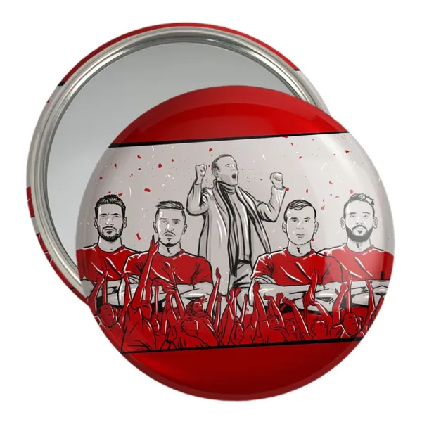 آینه های جیبی پرسپولیس خندالو دایره ای به قطر 7.5 سانتی متر می باشد که نه خیلی بزرگ و غیر قابل استفاده در کیف آرایشی ست و نه خیلی کوچک که تصویر خاصی در آن مشاهده نشود. سایزی استاندارد و کارآمد دارد و مناسب قرار گیری در کیف لوازم آرایش و کیف های کوچک دستی نیز هست.