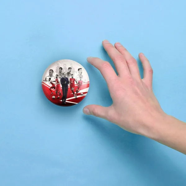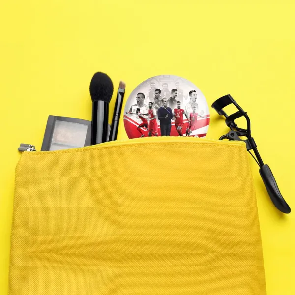 آینه های جیبی پرسپولیس خندالو دایره ای به قطر 7.5 سانتی متر می باشد که نه خیلی بزرگ و غیر قابل استفاده در کیف آرایشی ست و نه خیلی کوچک که تصویر خاصی در آن مشاهده نشود. سایزی استاندارد و کارآمد دارد و مناسب قرار گیری در کیف لوازم آرایش و کیف های کوچک دستی نیز هست.