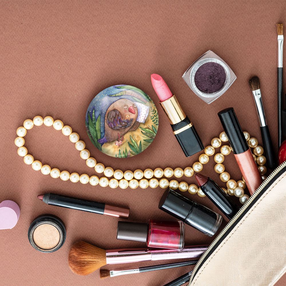آینه های جیبی پرنده خندالو دایره ای به قطر 7.5 سانتی متر می باشد که نه خیلی بزرگ و غیر قابل استفاده در کیف آرایشی ست و نه خیلی کوچک که تصویر خاصی در آن مشاهده نشود. سایزی استاندارد و کارآمد دارد و مناسب قرار گیری در کیف لوازم آرایش و کیف های کوچک دستی نیز هست.