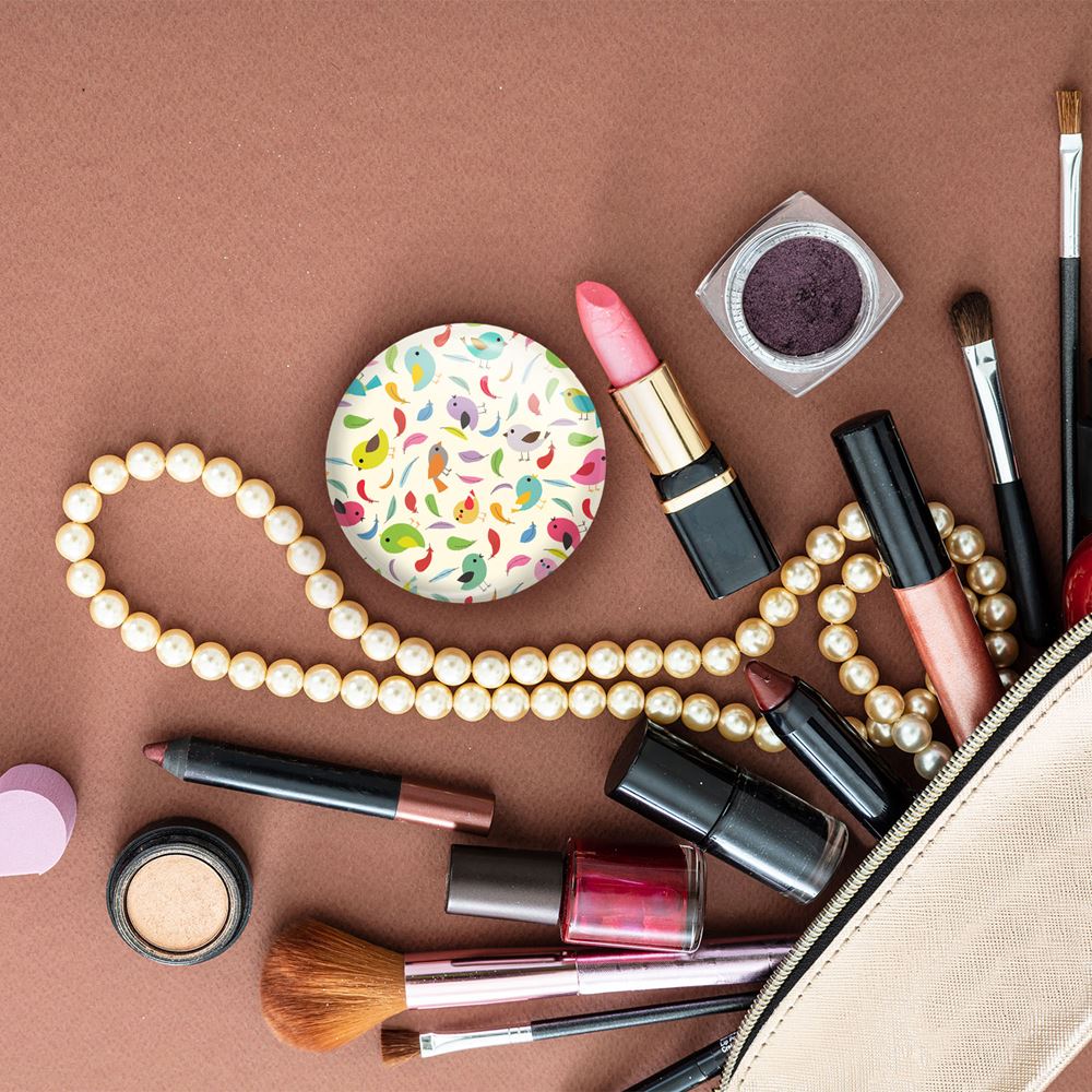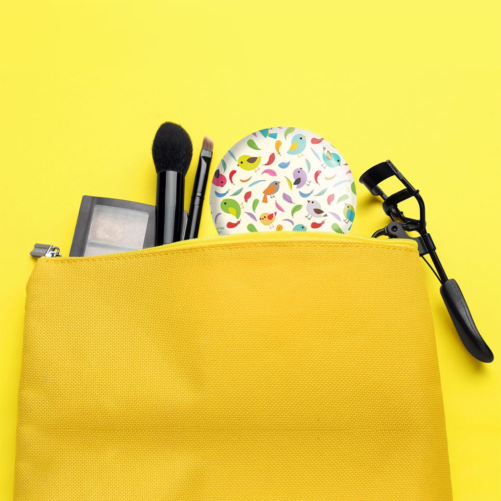 آینه های جیبی پرنده خندالو دایره ای به قطر 7.5 سانتی متر می باشد که نه خیلی بزرگ و غیر قابل استفاده در کیف آرایشی ست و نه خیلی کوچک که تصویر خاصی در آن مشاهده نشود. سایزی استاندارد و کارآمد دارد و مناسب قرار گیری در کیف لوازم آرایش و کیف های کوچک دستی نیز هست. بدنه ی آینه جیبی پرنده در قسمتی که آینه را در بر گرفته فلزی بوده و ظاهر براق و بسیار زیبایی دارد. چاپ طرح در پشت آینه بوسیله چاپگرهای دیجیتال شش رنگ با شفافیت و کیفیتی مثال زدنی انجام گرفته و با روکش لمینت حرارتی پوشیده شده که در مقابل آسیب و خط و خش مقاوم بوده و کیفیت بالایی دارد. آینه های جیبی پرنده خندالو با تنوع طرحی بسیار بالا، سلیقه هر نوع مخاطبی را تامین میکند.