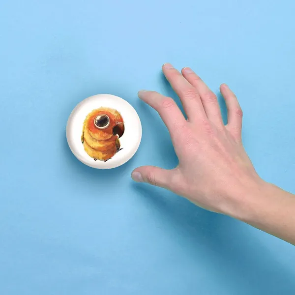 آینه های جیبی پرنده خندالو دایره ای به قطر 7.5 سانتی متر می باشد که نه خیلی بزرگ و غیر قابل استفاده در کیف آرایشی ست و نه خیلی کوچک که تصویر خاصی در آن مشاهده نشود. سایزی استاندارد و کارآمد دارد و مناسب قرار گیری در کیف لوازم آرایش و کیف های کوچک دستی نیز هست.