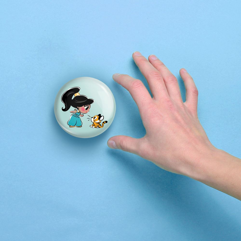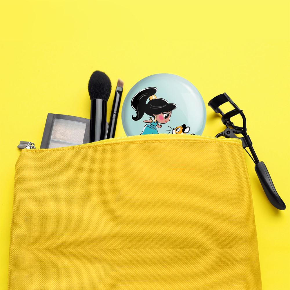 آینه های جیبی پرنسس دیزنی یاسمین خندالو دایره ای به قطر 7.5 سانتی متر می باشد که نه خیلی بزرگ و غیر قابل استفاده در کیف آرایشی ست و نه خیلی کوچک که تصویر خاصی در آن مشاهده نشود. سایزی استاندارد و کارآمد دارد و مناسب قرار گیری در کیف لوازم آرایش و کیف های کوچک دستی نیز هست. بدنه ی آینه جیبی پرنسس دیزنی یاسمین در قسمتی که آینه را در بر گرفته فلزی بوده و ظاهر براق و بسیار زیبایی دارد. چاپ طرح در پشت آینه بوسیله چاپگرهای دیجیتال شش رنگ با شفافیت و کیفیتی مثال زدنی انجام گرفته و با روکش لمینت حرارتی پوشیده شده که در مقابل آسیب و خط و خش مقاوم بوده و کیفیت بالایی دارد. آینه های جیبی پرنسس دیزنی یاسمین خندالو با تنوع طرحی بسیار بالا، سلیقه هر نوع مخاطبی را تامین میکند.