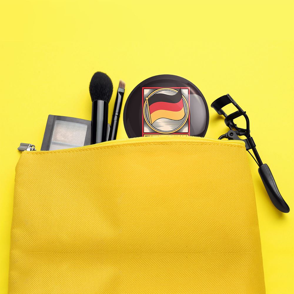 آینه های جیبی پرچم آلمان خندالو دایره ای به قطر 7.5 سانتی متر می باشد که نه خیلی بزرگ و غیر قابل استفاده در کیف آرایشی ست و نه خیلی کوچک که تصویر خاصی در آن مشاهده نشود. سایزی استاندارد و کارآمد دارد و مناسب قرار گیری در کیف لوازم آرایش و کیف های کوچک دستی نیز هست.