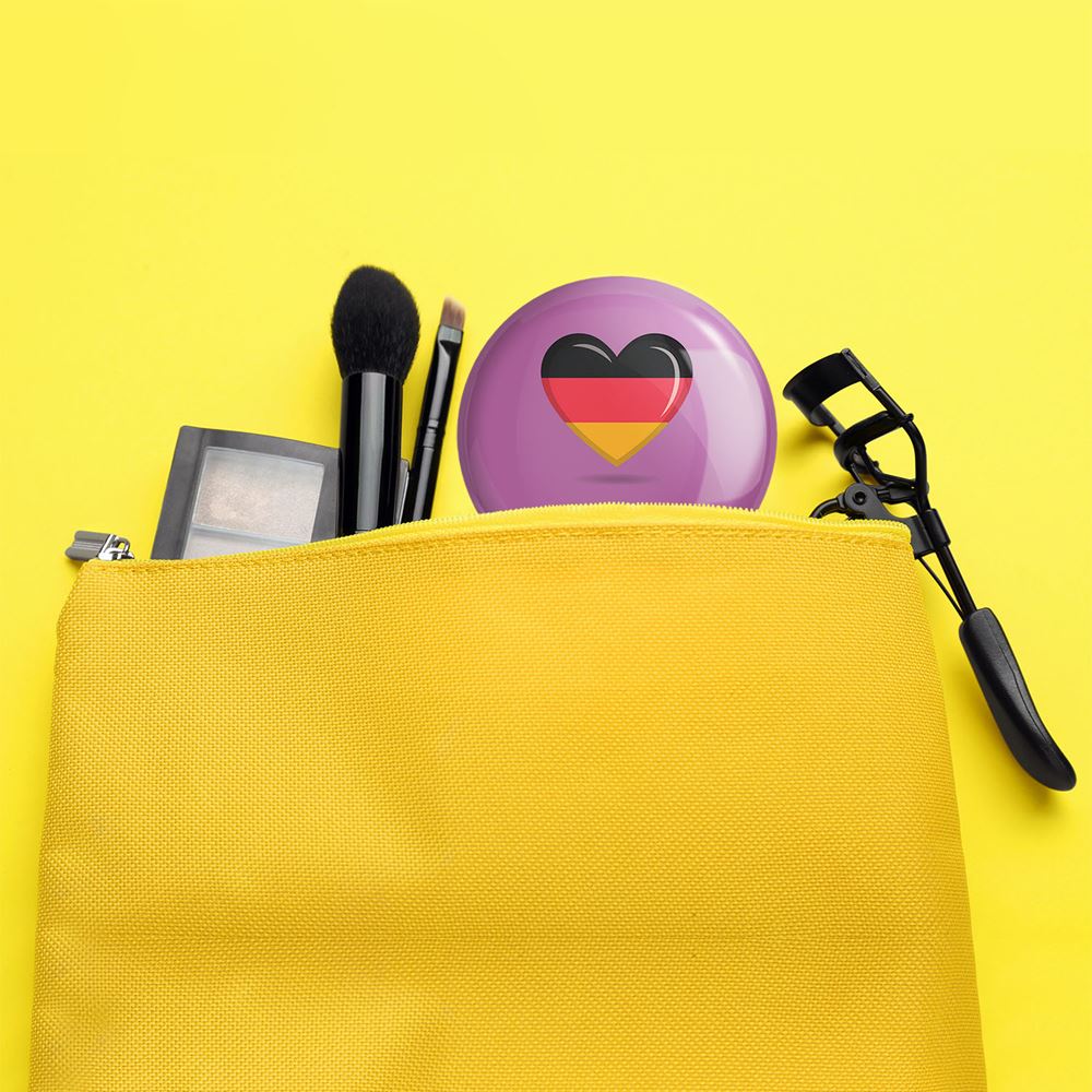 آینه های جیبی پرچم آلمان خندالو دایره ای به قطر 7.5 سانتی متر می باشد که نه خیلی بزرگ و غیر قابل استفاده در کیف آرایشی ست و نه خیلی کوچک که تصویر خاصی در آن مشاهده نشود. سایزی استاندارد و کارآمد دارد و مناسب قرار گیری در کیف لوازم آرایش و کیف های کوچک دستی نیز هست.