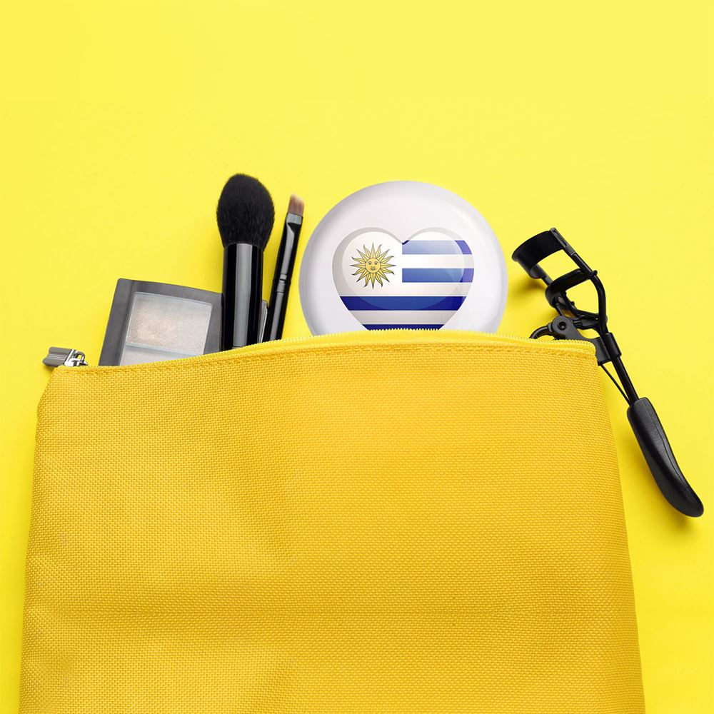 آینه های جیبی پرچم اروگوئه خندالو دایره ای به قطر 7.5 سانتی متر می باشد که نه خیلی بزرگ و غیر قابل استفاده در کیف آرایشی ست و نه خیلی کوچک که تصویر خاصی در آن مشاهده نشود. سایزی استاندارد و کارآمد دارد و مناسب قرار گیری در کیف لوازم آرایش و کیف های کوچک دستی نیز هست.