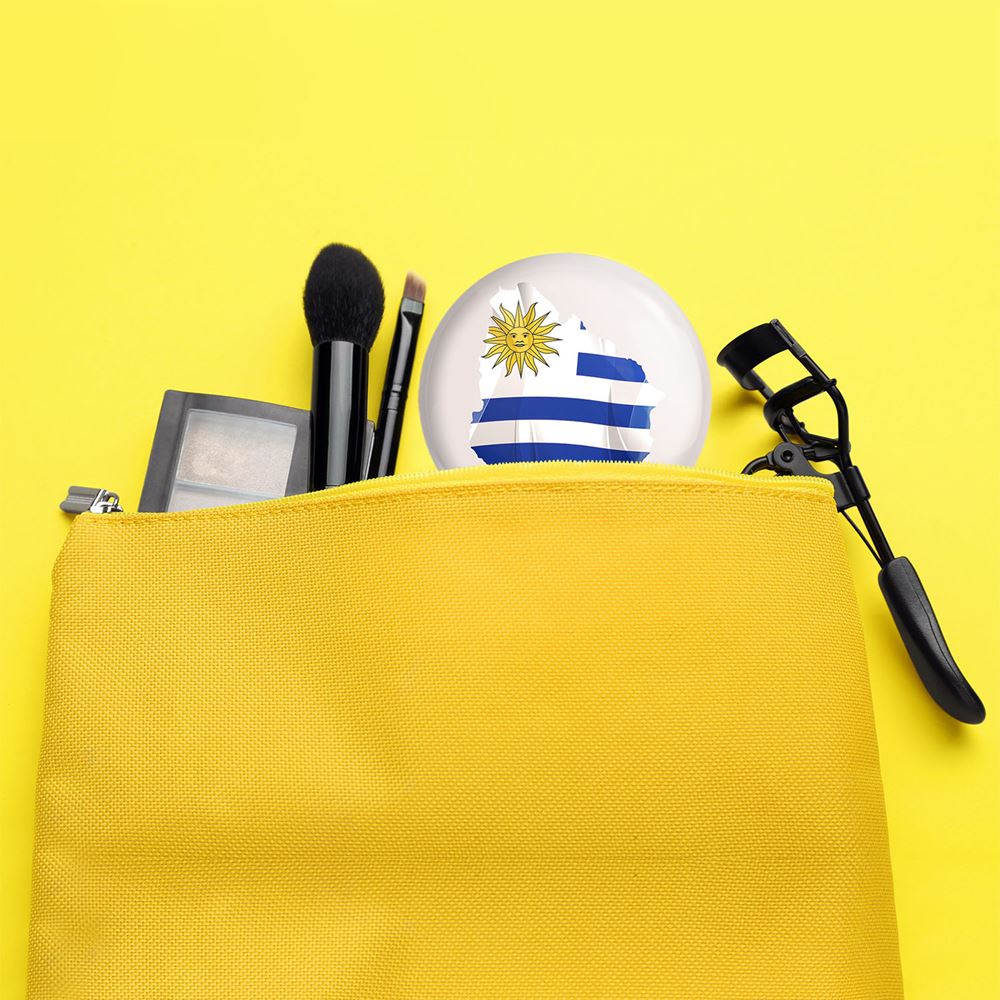 آینه های جیبی پرچم اروگوئه خندالو دایره ای به قطر 7.5 سانتی متر می باشد که نه خیلی بزرگ و غیر قابل استفاده در کیف آرایشی ست و نه خیلی کوچک که تصویر خاصی در آن مشاهده نشود. سایزی استاندارد و کارآمد دارد و مناسب قرار گیری در کیف لوازم آرایش و کیف های کوچک دستی نیز هست.