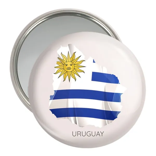 آینه های جیبی پرچم اروگوئه خندالو دایره ای به قطر 7.5 سانتی متر می باشد که نه خیلی بزرگ و غیر قابل استفاده در کیف آرایشی ست و نه خیلی کوچک که تصویر خاصی در آن مشاهده نشود. سایزی استاندارد و کارآمد دارد و مناسب قرار گیری در کیف لوازم آرایش و کیف های کوچک دستی نیز هست.