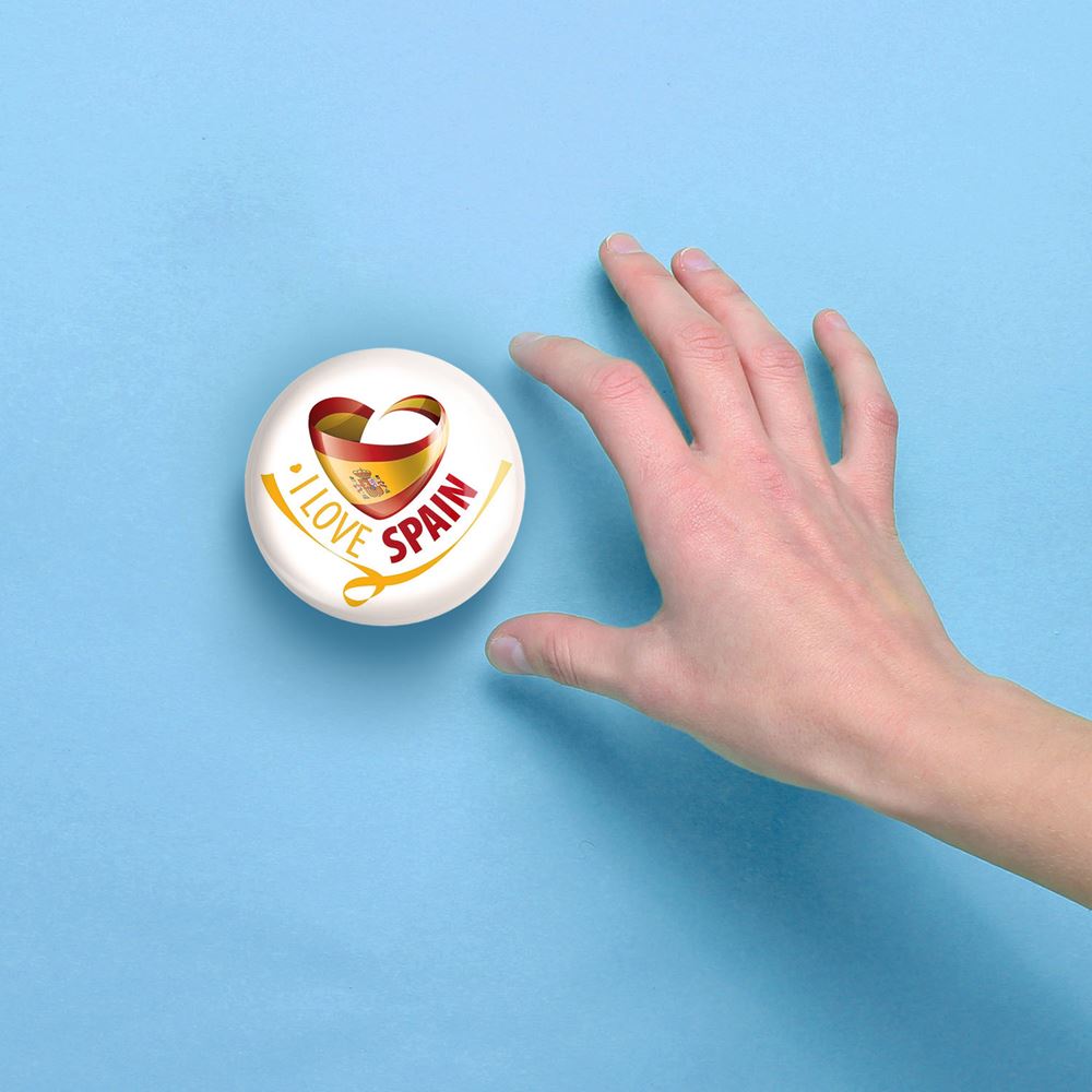 آینه های جیبی پرچم اسپانیا خندالو دایره ای به قطر 7.5 سانتی متر می باشد که نه خیلی بزرگ و غیر قابل استفاده در کیف آرایشی ست و نه خیلی کوچک که تصویر خاصی در آن مشاهده نشود. سایزی استاندارد و کارآمد دارد و مناسب قرار گیری در کیف لوازم آرایش و کیف های کوچک دستی نیز هست. بدنه ی آینه جیبی پرچم اسپانیا در قسمتی که آینه را در بر گرفته فلزی بوده و ظاهر براق و بسیار زیبایی دارد. چاپ طرح در پشت آینه بوسیله چاپگرهای دیجیتال شش رنگ با شفافیت و کیفیتی مثال زدنی انجام گرفته و با روکش لمینت حرارتی پوشیده شده که در مقابل آسیب و خط و خش مقاوم بوده و کیفیت بالایی دارد. آینه های جیبی پرچم اسپانیا خندالو با تنوع طرحی بسیار بالا، سلیقه هر نوع مخاطبی را تامین میکند.