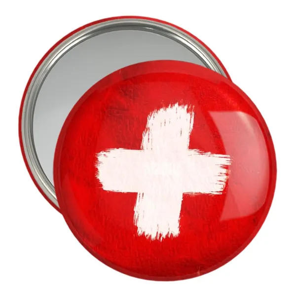 آینه های جیبی پرچم سوئیس خندالو دایره ای به قطر 7.5 سانتی متر می باشد که نه خیلی بزرگ و غیر قابل استفاده در کیف آرایشی ست و نه خیلی کوچک که تصویر خاصی در آن مشاهده نشود. سایزی استاندارد و کارآمد دارد و مناسب قرار گیری در کیف لوازم آرایش و کیف های کوچک دستی نیز هست.