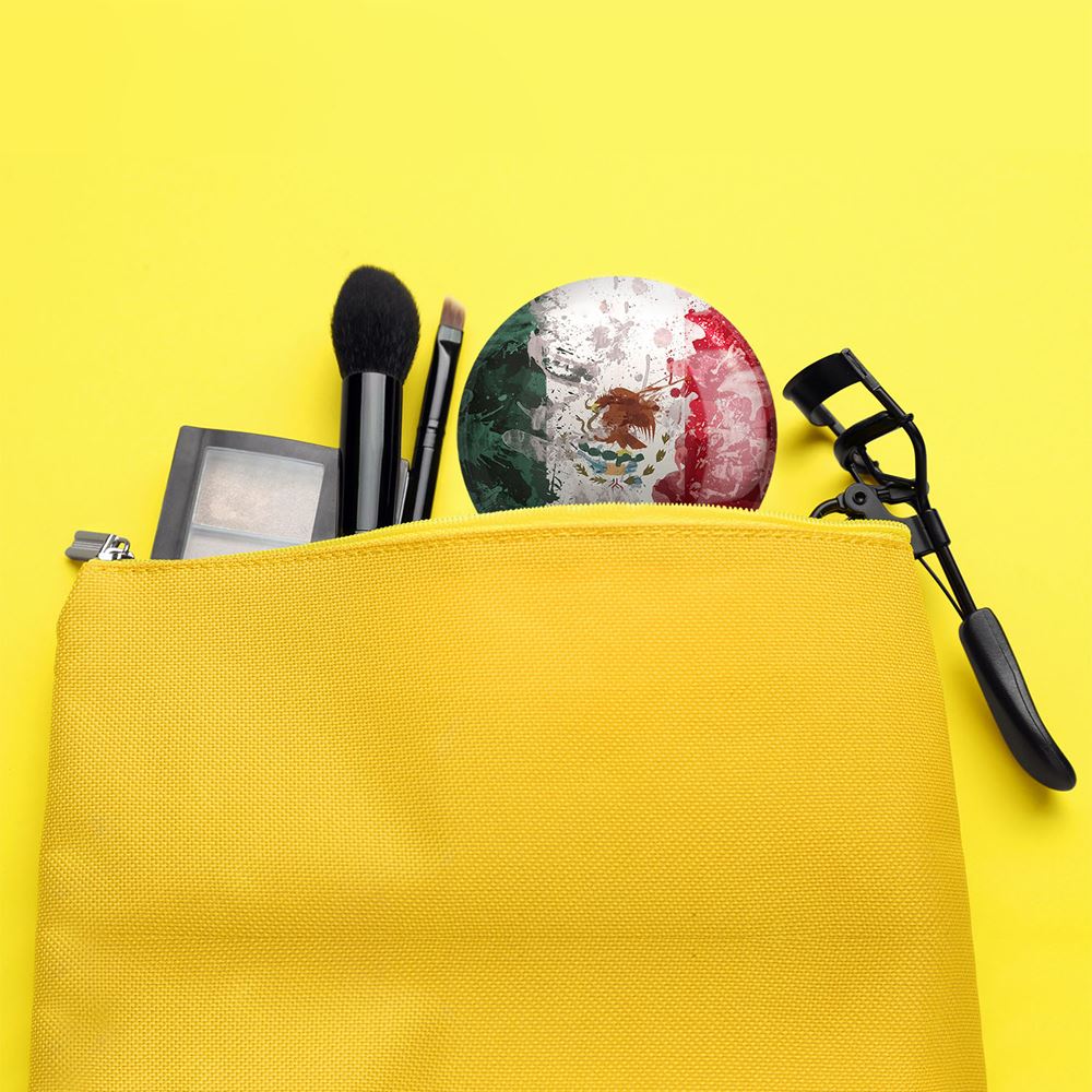 آینه های جیبی پرچم مکزیک خندالو دایره ای به قطر 7.5 سانتی متر می باشد که نه خیلی بزرگ و غیر قابل استفاده در کیف آرایشی ست و نه خیلی کوچک که تصویر خاصی در آن مشاهده نشود. سایزی استاندارد و کارآمد دارد و مناسب قرار گیری در کیف لوازم آرایش و کیف های کوچک دستی نیز هست.